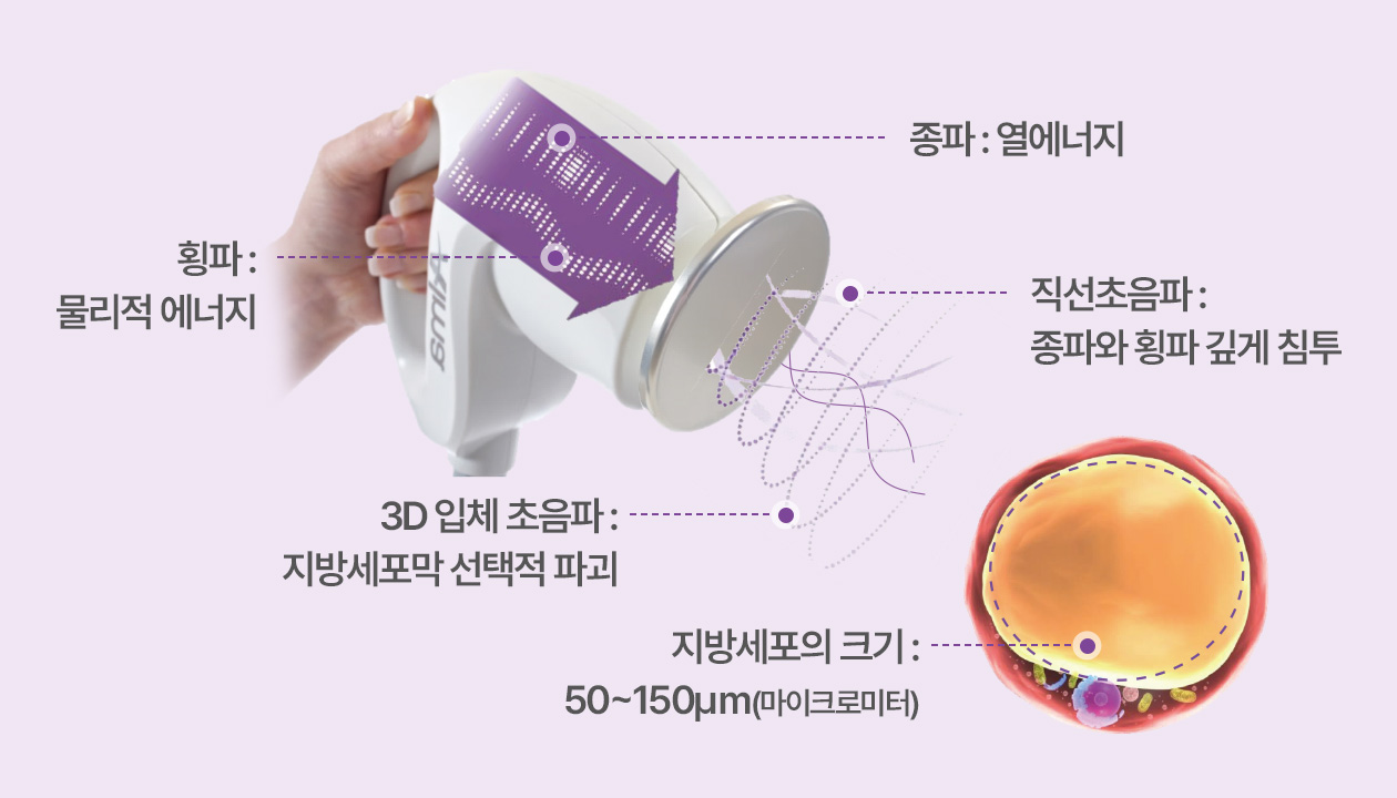 튠라이너는 초음파 에너지가 지방층을 ‘컷팅하듯’ 분해해