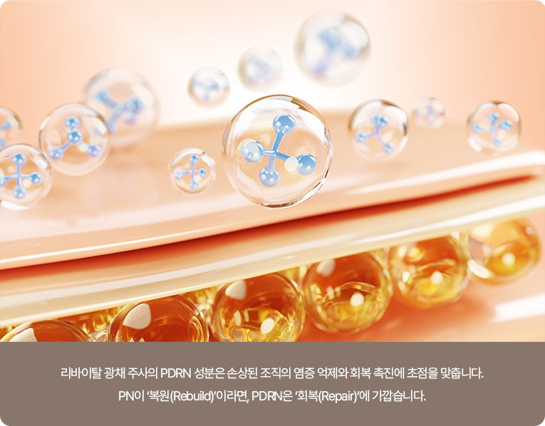 PDRN 보다 분자량이 커서 피부 내 오래 잔존하여 근본적이고 장기적인 개선 효과를 얻습니다.